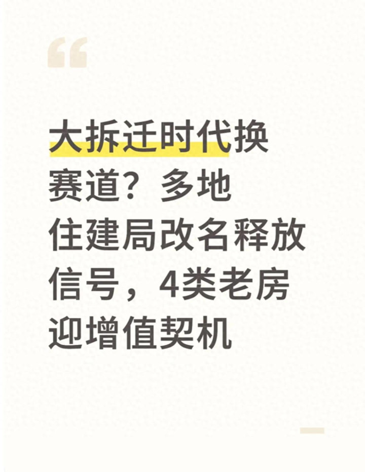 所以说,住建局改名为住更局,绝对不是换个招牌那么简单。这标志着我们熟悉的那个“搞基建、盖房子、卖地狂奔”的时代,基本要画上句号了。未来的城市发展,将从“增量建房”转向“存量提质”。