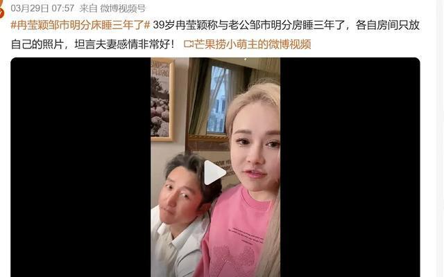 冉莹颖和邹市明是圈内圈外公认的恩爱夫妻,他们已分房睡三年,当时有网友猜测这是否是为婚变铺垫之时,冉莹颖给出了一个让所有人都意想不到的答案,她说:分房不代表没有爱,婚姻里不一定要有夫妻生活。